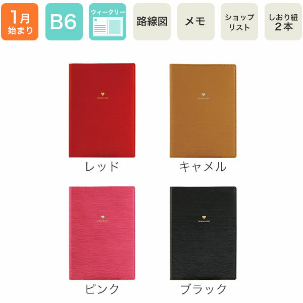 ■サイズ カバー:W132mm × H187mm 中面サイズ:W128mm × H182mm ■素材:塩ビカバー ■本文:192ページ ■B6ウィークリーホリゾンタルType2 ○2020・2021 年間カレンダー ↓ ○2020イヤースケジュール ↓ ○マンスリープラン ↓ ○月間予定表(2020年1月〜2021年3月まで) ↓ ○週間予定表(2020年1月〜2021年3月まで) ↓ ○東京・大阪近郊路線図 ↓ ○国内都市地下鉄路線図 (東京・大阪・名古屋・札幌・仙台・横浜・京都・神戸・福岡) ↓ ○ショップリスト ↓ ○メモ メーカー希望小売価格はメーカーカタログに基づいて掲載していますCamille カミーユ 革のような質感の表紙と小口の金色が上品な仕上がり。