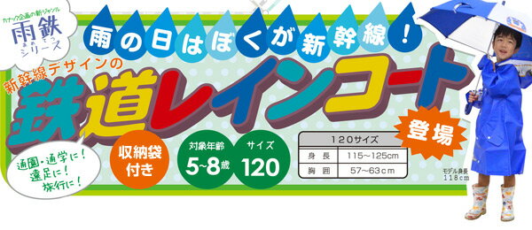レインコート カッパ キッズ 子供 新幹線 サイズ120 (対象年齢5-8歳) C-001/002/003/004 レインコート レインポンチョ キッズ 子供 男の子 電車 新幹線 通学 通園 小学生 カナック(Kanack) 【送料無料】