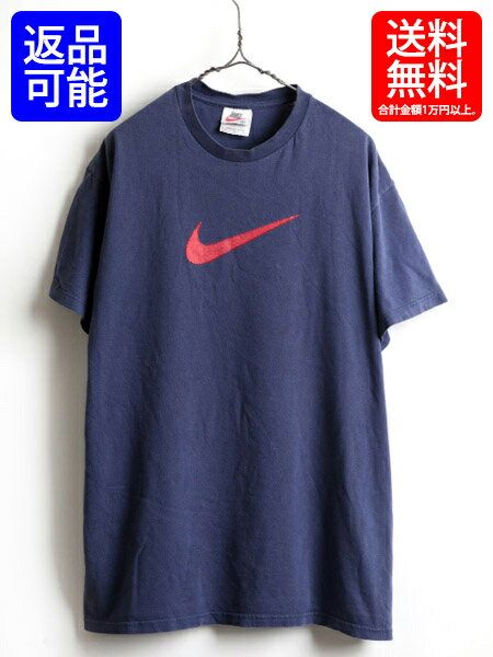 大きいサイズ XL 90's USA製 ■ ナイキ ビッグ スウッシュ プリント 半袖 Tシャツ ( 男性 メンズ ) 古着 90年代 半袖Tシャツ ロゴT NIKE 紺| 【USA古着】【古着】 中古 トップス プリントTシャツ ロゴTシャツ スポーツウエア スウォッシュ ネイビー クルーネック アメリカ製