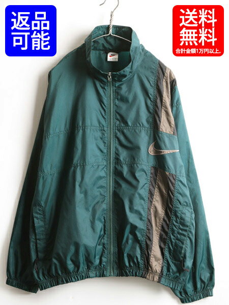 大きいサイズ XL 90s ■ NIKE ナイキ フルジップ ビッグ スウッシュ 刺繍 ナイロン ジャケット ( 男性 メンズ ) 古着 ジャンパー 緑 90年代| 【USA古着】中古 90年代 オールド ナイロンジャケット グリーン ウインドブレーカー ハイネック ジャンバー ブルゾン ジップアップ