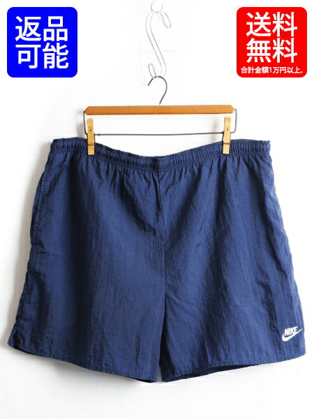 90s オールド ■ NIKE ナイキ ビッグ スウッシュ プリント ナイロン ショーツ ( メンズ 男性 L ) 90年代 ショートパンツ 古着 紺 白 短パン| 【USA古着】中古 オールド スイムショーツ ハーフパンツ ナイロンショーツ 半パン ネイビー ビッグロゴ ワンポイント