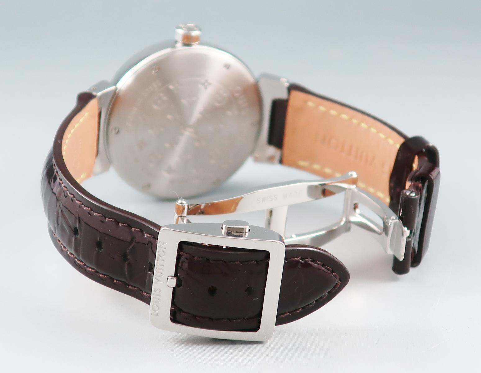 ) ブランド ルイヴィトン 型番 Q131U ムーブメント クォーツ(電池式) 機能 2針 色 【文字盤】アマラント 【ケース】シルバー 【ベルト】アマラント 素材 ステンレススティール製・純正ダイヤモンド・純正バンド・純正バックル サイズ 【ケース径】34mm【ケース厚み】10mm【腕周り】18.5cm※採寸方法の詳細はこちら 付属品 ギャランティ(国内正規店2010年購入品)・セリート・内外BOX Cオムウ 202003 【店頭受取対応商品 大阪 心斎橋】watch店 他のルイヴィトンの商品はこちら 他の時計はこちら